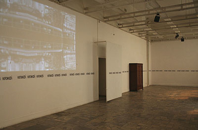 Nowa praca Jana Świdzińskiego minimalistycznymi środkami tworzy przestrzeń dla pojęciowego dyskursu. Jeden obiekt, napisy na ścianie i prosta realizacja wideo wyznaczają punkty odniesienia dla refleksji, której tematem jest niemożliwość odtworzenia kontekstów minionych zdarzeń.